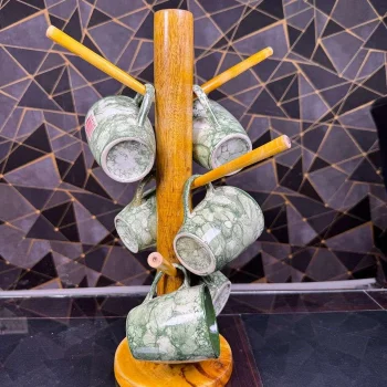 Wooden Mug Holder Stand – Rustic Coffee Cup Organizer Rack | WCSPK