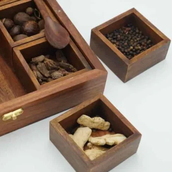 Upgrade your dining and serving experience with this premium wooden serving tray set, beautifully handcrafted for elegant food presentation. This stylish snack serving platter with bowls and soup spoons is perfect for serving tea-time snacks, dry fruits, nuts, sauces, or desserts.